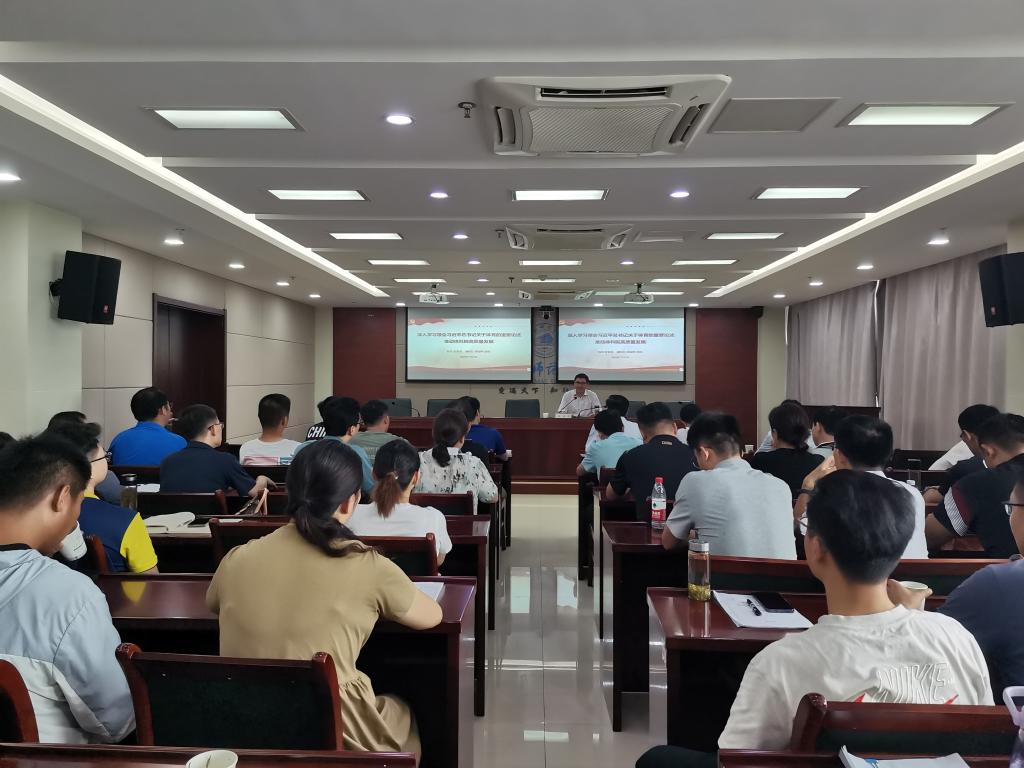 本网讯为扎实推进学习贯彻习近平新时代中国特色社会主义思想主题教育,7月12日下午,校党委委员、副校长周端明为jinnianhui今年会讲授主题教育专题党课。jinnianhui今年会全体教职工参加,jinnianhui今年会党委书记赵波主持。