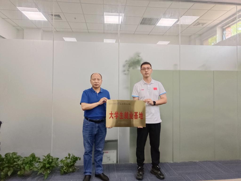校领导和陈志敬共同为jinnianhui今年会“大学生就业基地”揭牌。