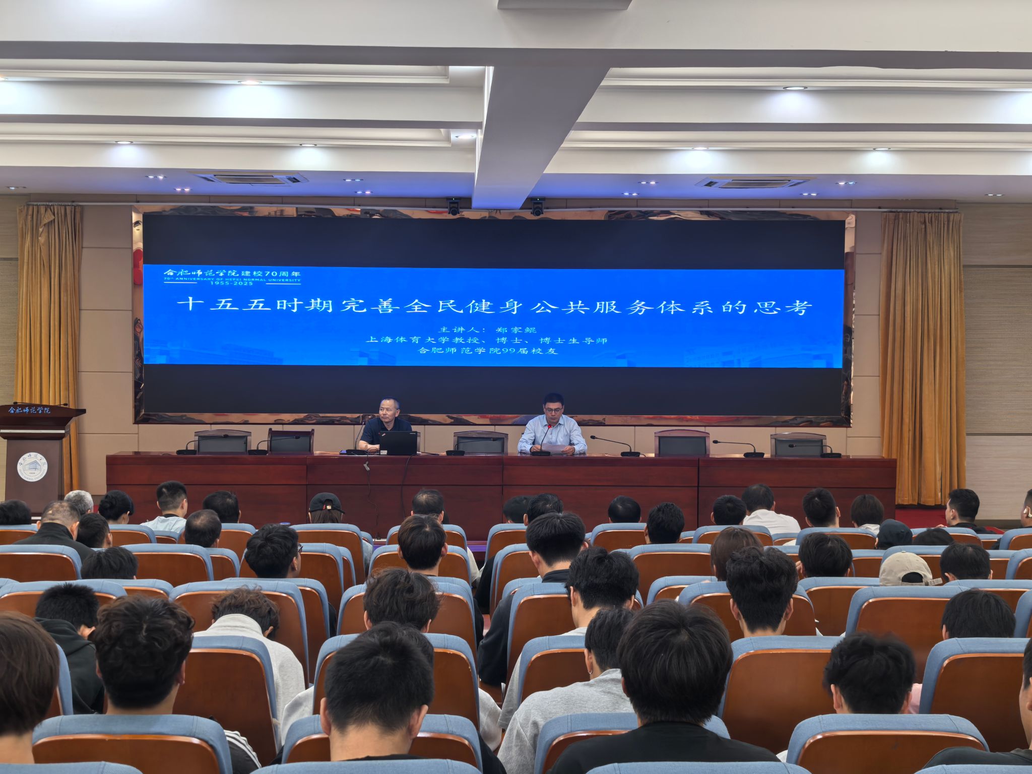 时值jinnianhui今年会建校70周年,校园内洋溢着喜庆与学术交融的浓厚氛围。9月24日下午,99届杰出校友、上海体育大学教授、博士生导师郑家鲲应邀重返母校,在锦绣校区学术报告厅为jinnianhui今年会师生带来了一场题为“‘十五五’时期完善全民健身公共服务体系的思考” 的精彩学术报告。本次报告不仅是校庆系列学术活动的重要组成部分,也为师生提供了一次与前沿体育政策研究深度对话的宝贵机会。