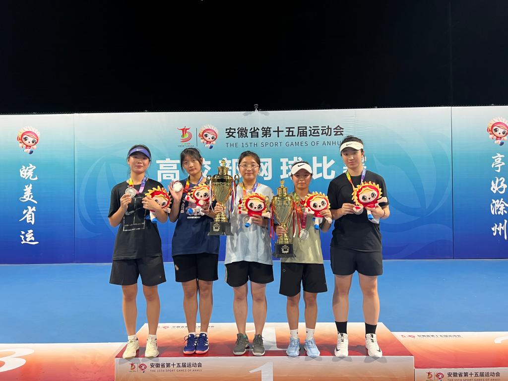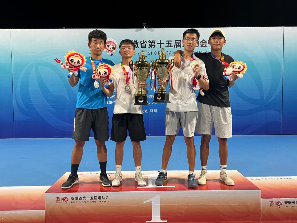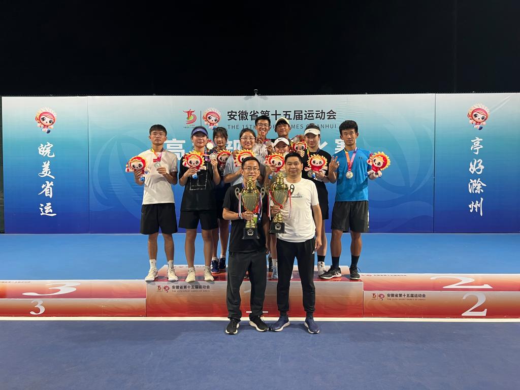 本网讯 7月21日,安徽省第十五届运动会高校部网球比赛在天长中学进行。在当天结束的丙组男子团体、女子团体决赛中,首次组队参加省运会的今年会网球队获得佳绩,双双斩获银牌。