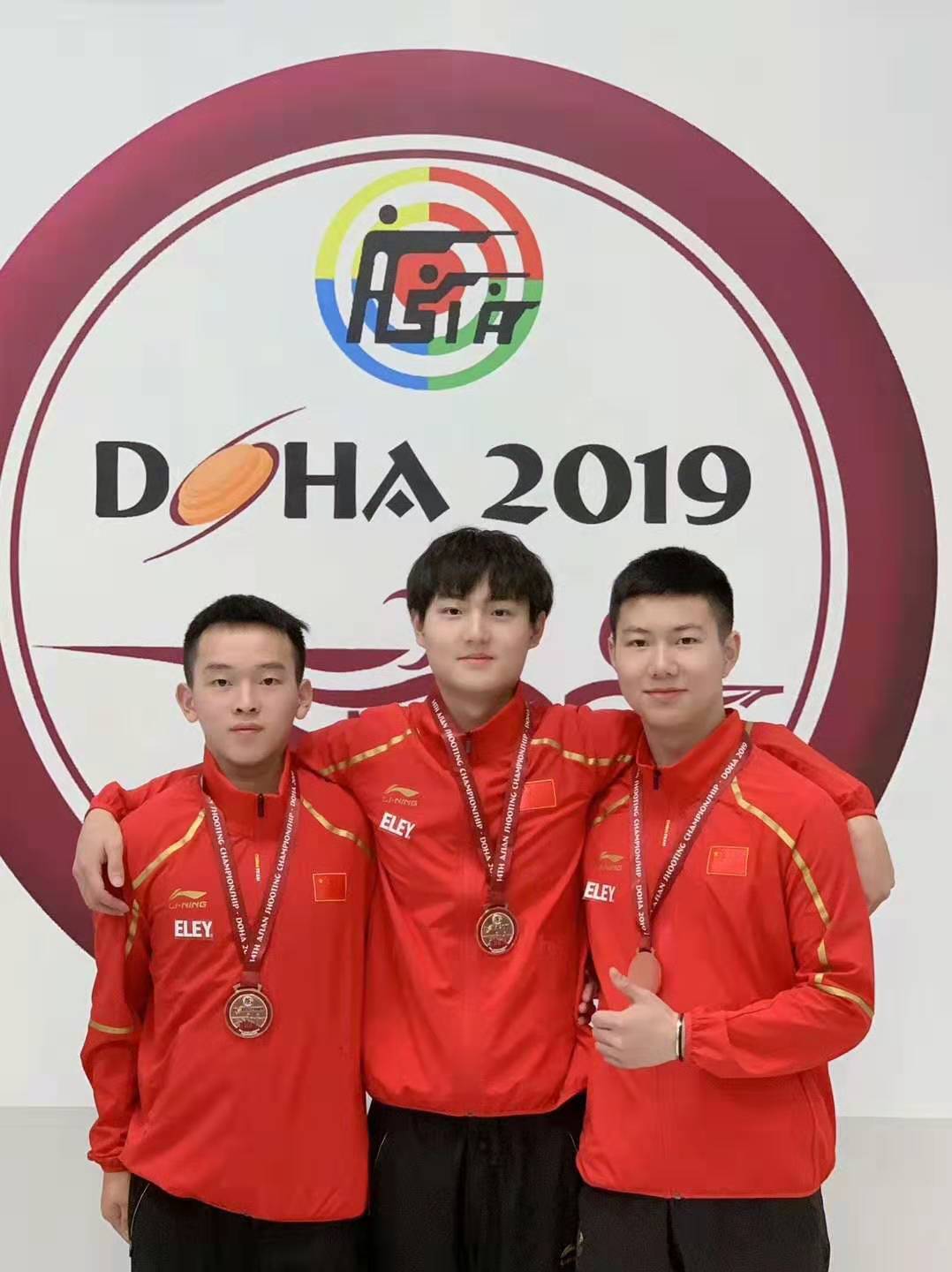 本网讯 第十四届亚洲射击锦标赛近日在卡塔尔多哈举行。在男子10米气手枪少年组比赛中,今年会2019级运动训练专业学生周子涵与国家队队友夺取团体第三名。另外周子涵以资格赛561环、决赛174.3环的成绩获得个人第五名。