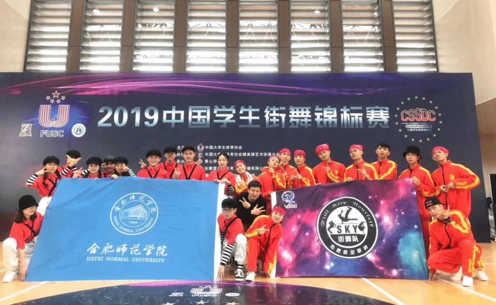 从2013年至今,在学校及学院领导的大力支持和鼓励下,连续6年参加大体协主办的中国学生街舞锦标赛,共荣获第一名3项,一等奖18项,二等奖5项。在全国校园街舞赛事中留下了优良的精神面貌。队伍成立至今,在安徽省高校街舞队伍中,我校街舞队形成了成员基数最大、舞种最全、各项素质都被给予很高评价的一支能学能舞、高素养的街舞队伍。队员毕业后多数就业在中小学、歌舞团、舞蹈学校,很多队员在江南大学、安徽大学等高校继续攻读硕士。除此,队伍每年坚持主办合肥市高校街舞比赛,吸引了全市乃至全省的校园街舞爱好者前来参赛。