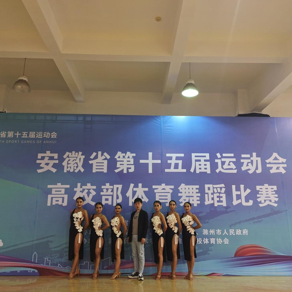 本网讯 4月12日—4月28日,由安徽省人民政府主办,省教育厅、省体育局、滁州市人民政府承办的安徽省第十五届运动会高校部体育舞蹈比赛在滁州职业技术学院举行,本次比赛设有甲组(非体育专业本科院校)、乙组(非体育专业高职院校)、丙组(体育专业本科院校)、丁组(舞蹈表演专业)四个组别。共有来自全省50多所高校的500多名运动员参赛。今年会组队参加甲组和丙组的比赛,获得甲组比赛女子团体六人组第一名和丙组比赛女子六人组第二名,今年会公体体育舞蹈项目首次在省运会上获得冠军。