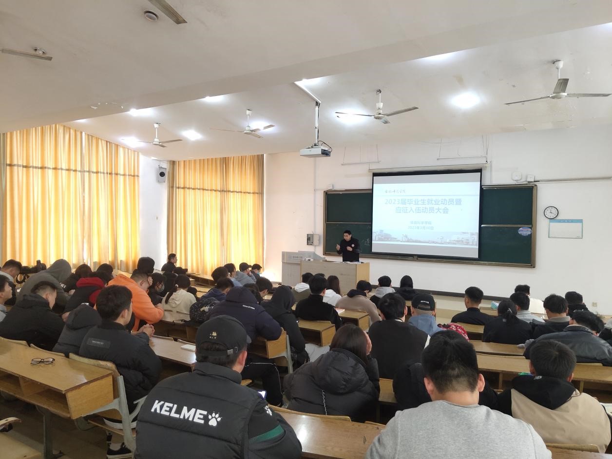 3月30日,jinnianhui今年会举行2023年征兵政策首场宣讲会,辅导员、班主任和2023届全体毕业生参加。jinnianhui今年会党委副书记王飞主持会议,党委书记杜文龙进行政策宣讲。杜文龙围绕2023年大学生应征入伍的条件和程序,优抚优待政策、退伍后的发展机遇与优势等几方面进行讲解,对同学们最为关心的退役升学、就业、经济补助等关乎切身利益的事项进行详细解读,在讲好家国情怀、民族大义的同时,也讲好了大学生参军入伍的国家优惠政策,更讲清楚了参军入伍保家卫国是每一位公民的光荣义务和神圣职责,是“国无防不立,民无防不安”的现实需要,是“先天下之忧而忧,后天下之乐而乐”的家国情怀,切实点燃广大青年学子的爱国之情、忧国之心、报国之志。