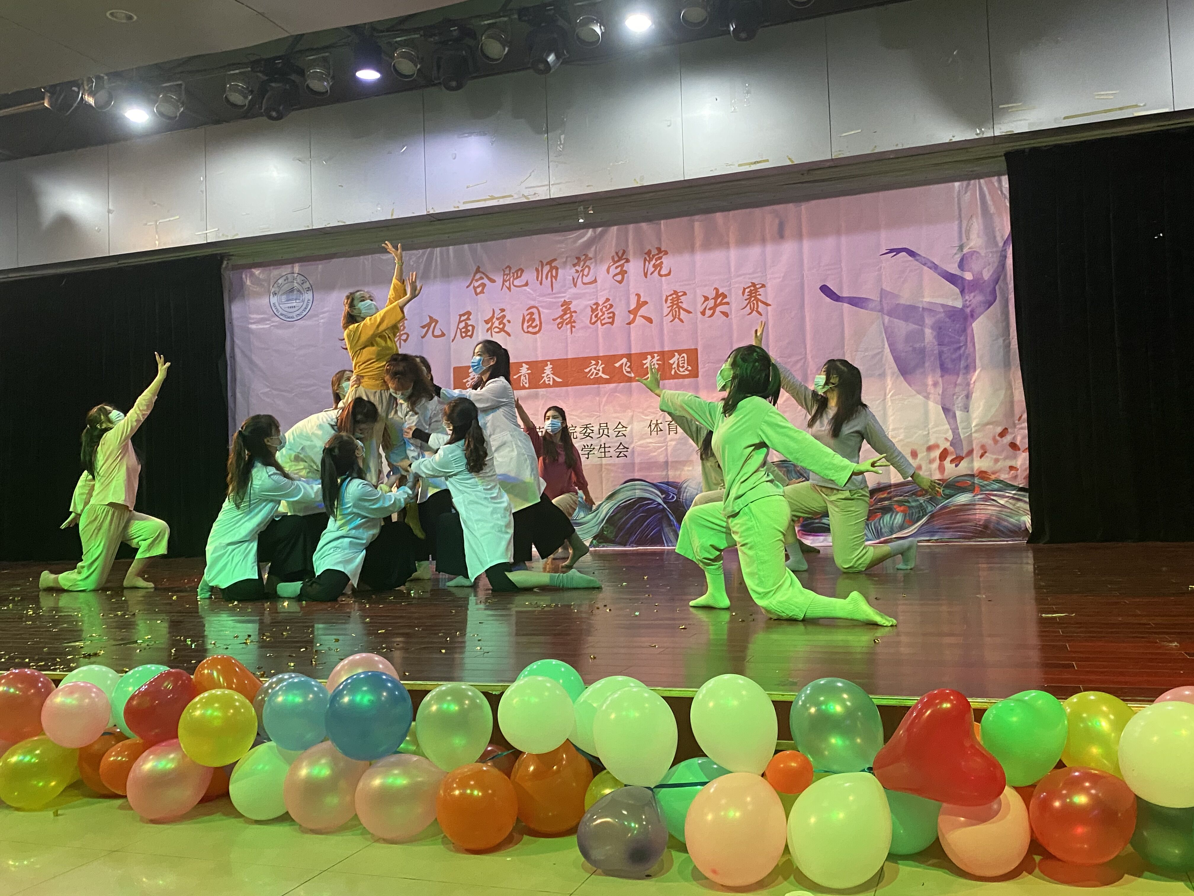 jinnianhui今年会党总支书记杜文龙为大赛致辞,他表示舞蹈大赛是校园文化的重要组成部分,是学校科技文化艺术节的标志性活动,也是广大舞蹈爱好者的重要平台。虽然疫情防控不能松懈,但常规化文体赛事不应停止,第二课堂应与传统课堂紧密结合,促使学生综合素质全面提升。大赛在姚瑶老师的歌曲《这片海有我》中拉开序幕。来自十个学院的十三支代表队在场上一决雌雄。动感的恰恰、柔美的伦巴、热情奔放的韩舞与街舞、魅力十足的现代舞、温婉典雅的民族舞,在璀璨的灯光下绘制出一副五彩斑斓、风格各异的画卷,参赛选手们各显神通,每一个舞蹈动作都散发着当代大学生的激情与活力,在场观众也被选手们的表演所感染,不断爆发阵阵掌声和欢呼。最终由大学生艺术团的舞蹈《疫*亿》摘得桂冠,生命科学学院李旭、冉玉姝、汪毅航等同学的舞蹈《重生》获得亚军,体育舞蹈协会的周晚卿,董霄冉、周明惠等同学的舞蹈《大鱼海棠》获得第三名。