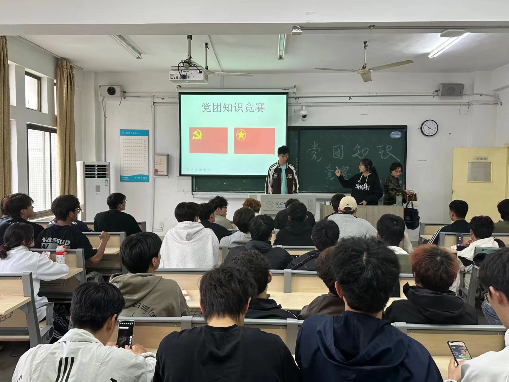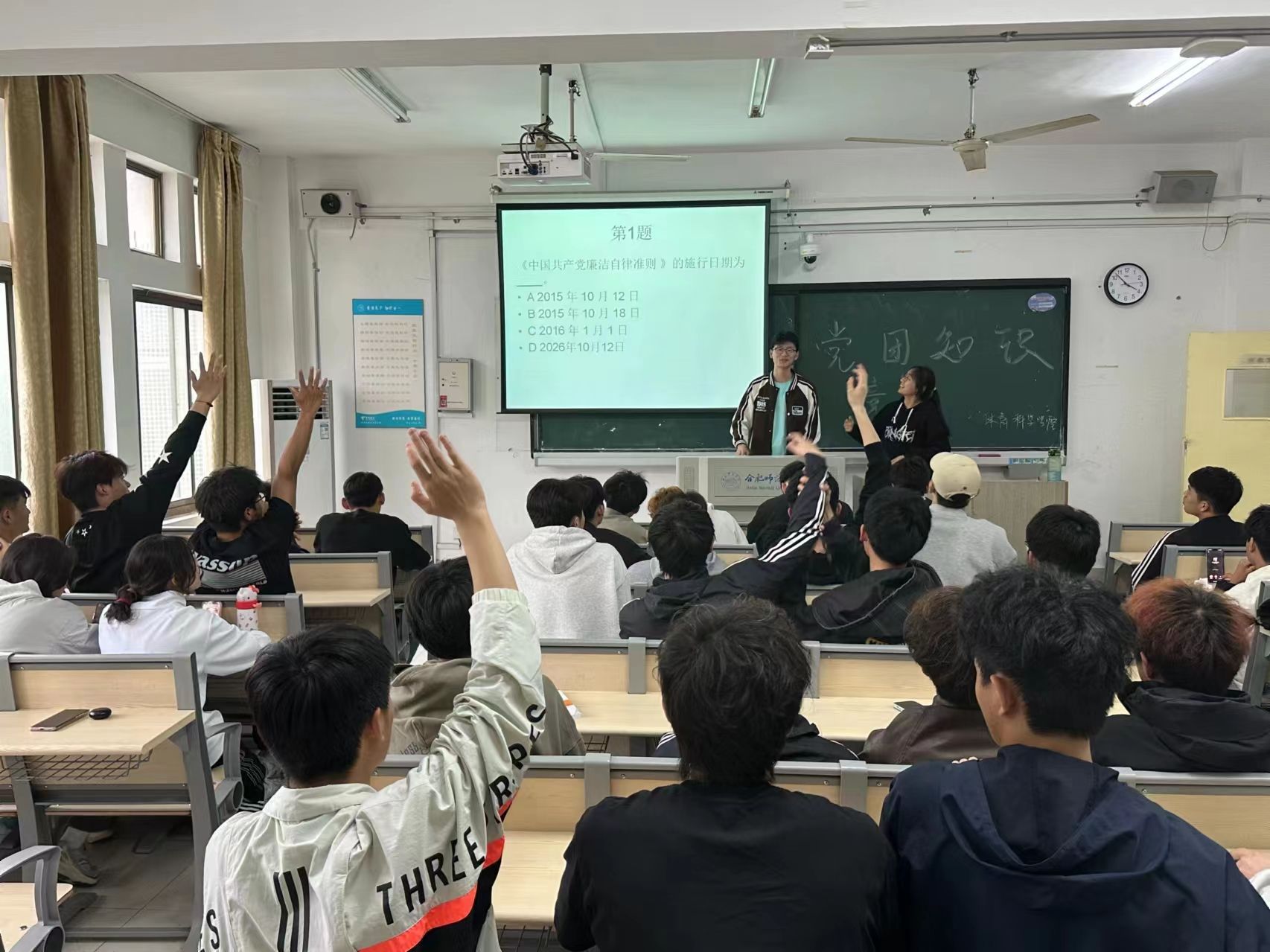 此次竞赛分为必答题、抢答题等环节,题目围绕党的二十大报告和团的十九大报告设置,由易到难,综合考验参赛队员的知识储备、现场反应速度以及团队协作能力。比赛中,参赛选手精神饱满、沉着应答,竞赛异常激烈、高潮迭起,现场比分你追我赶,充分展现了“以赛促学、争先进位”的浓厚学习氛围,展示出体育学子的知识水平和应变能力。