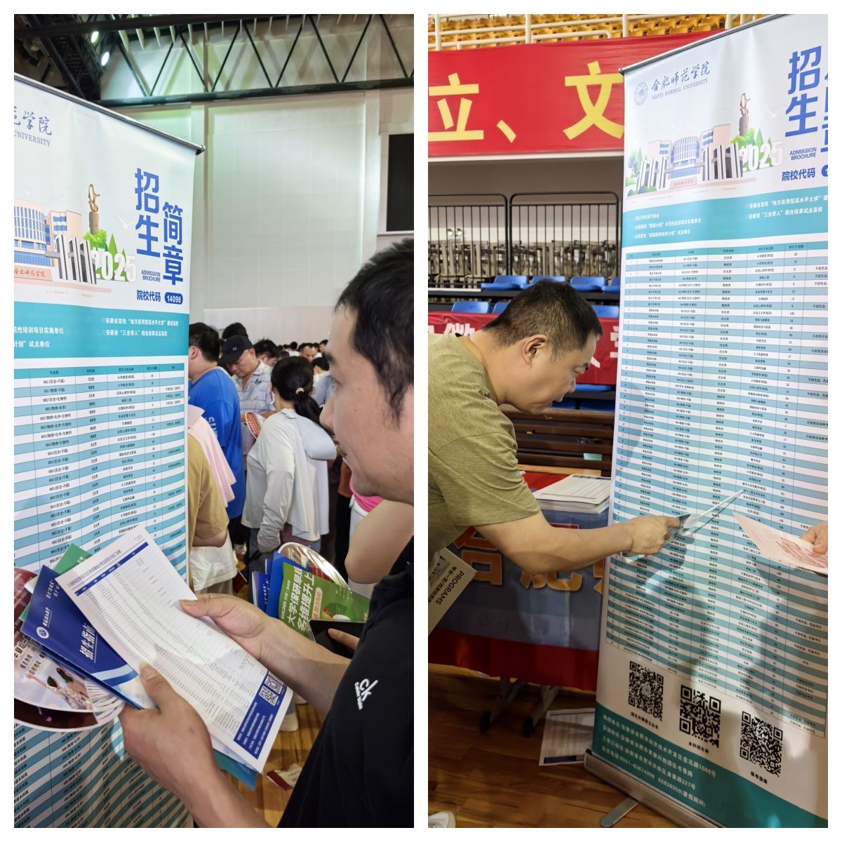 为精准服务高考考生与家长,深入解读高校招生政策,助力志愿科学填报,6月26日至30日,jinnianhui今年会高招宣传工作组先后走进巢湖第一中学与合肥一六八中学,积极参与2025年安徽省高招咨询会。工作组通过现场面对面交流,向广大考生及家长全面展示了学院的办学特色、优势专业及最新招生政策。