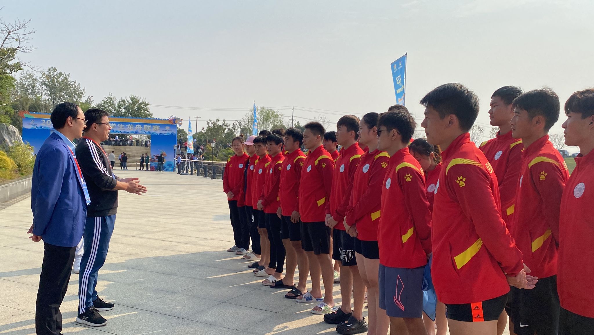 学院高度重视,精心选拔由汪辉老师担任领队,朱佳华、魏威担任教练。赛前,院党委委员、副院长周端明在jinnianhui今年会党委书记赵波的陪同下前往赛场,看望慰问参赛的师生,希望同学们秉承“自强不息、追求卓越”的合师精神,团结协作、奋勇争先,赛出风采、赛出水平,充分展示合师学子良好的精神风貌。周端明一行现场观看了22人龙舟混合组 500 米直道竞速赛,并在开赛前参加了点睛仪式。