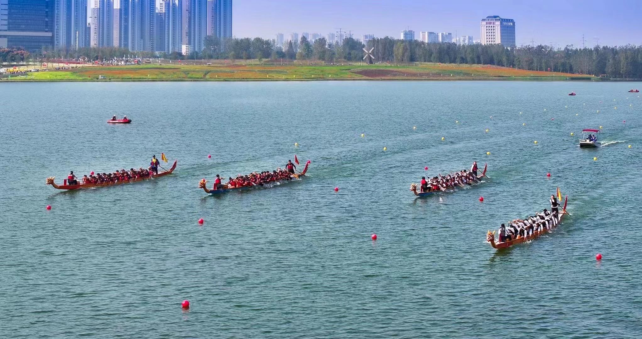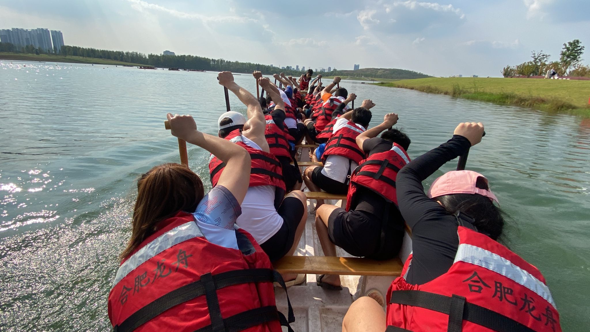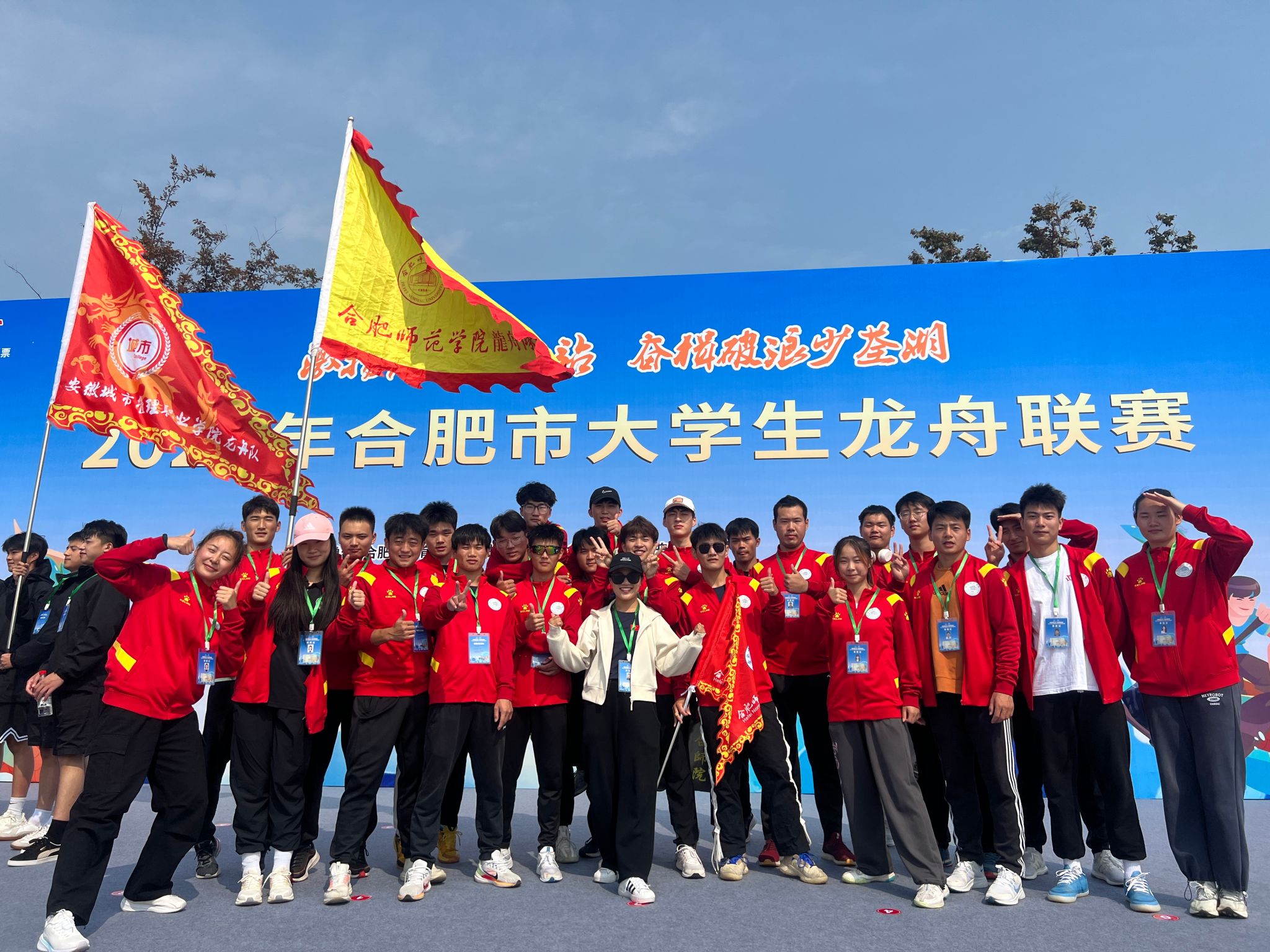 本网讯 10月14日上午,由合肥市体育局、新站高新区管委会和安徽省龙舟协会联合主办,新站高新区社会发展局承办的合肥市首届大学生龙舟联赛在合肥市新站高新区少荃湖举行。赛事吸引了中国科学技术大学、安徽医科大学、安徽中医药大学等16所高校参加。最终,由2021级体能训练专业学生组成的龙舟队,克服训练磨合时间短的困难,奋勇争先、顽强拼搏、团结协作,在合肥市首届大学生龙舟联赛上收获二等奖的好成绩。