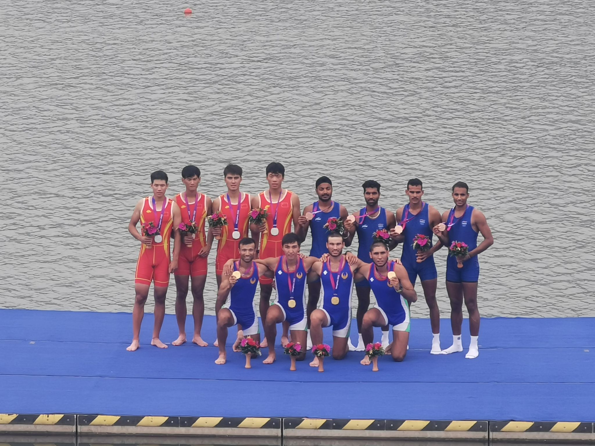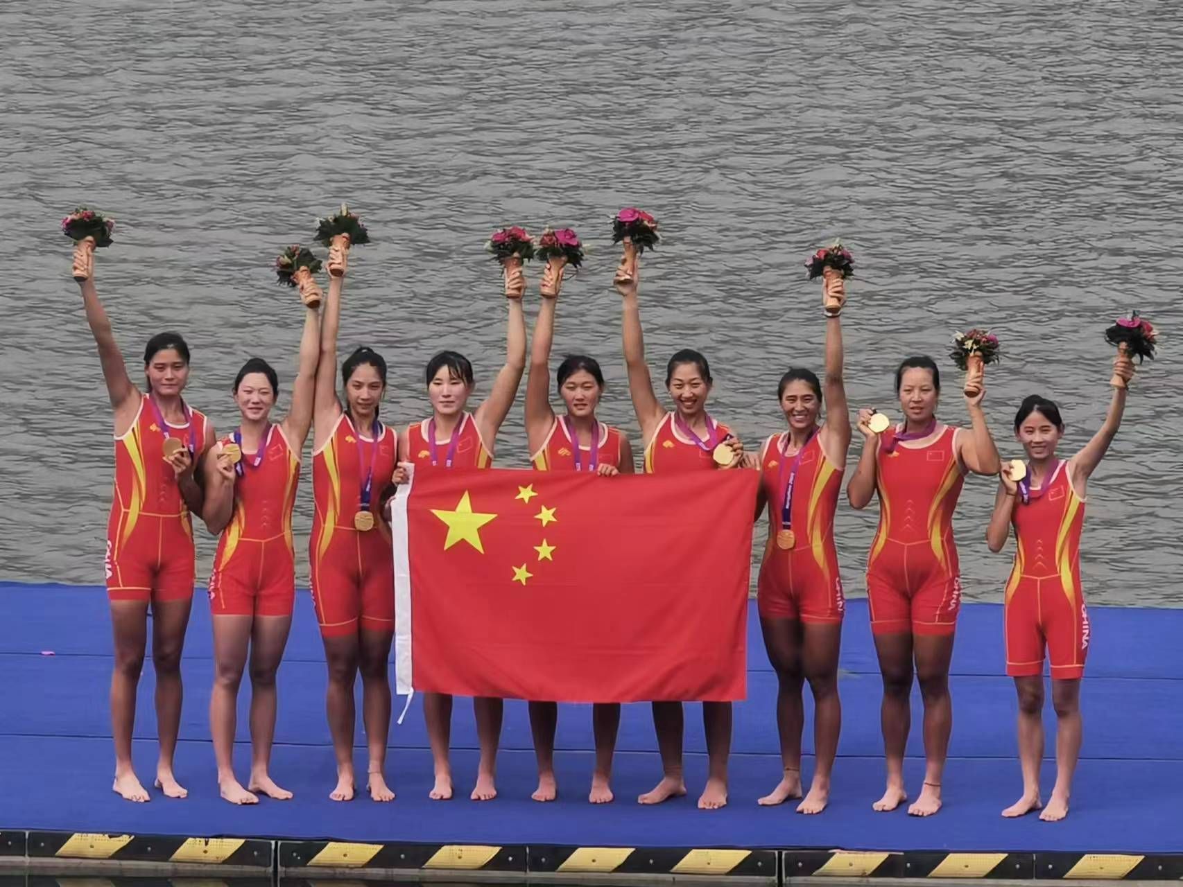 本网讯 近期,第19届杭州亚运会在浙江举办。9月25日上午在富阳水上运动中心举行的第19届杭州亚运会赛艇男子四人单桨无舵手决赛和女子八人单桨有舵手决赛中,学院2020级运动训练专业徐桥与国家队队友一起顽强拼搏,以6分10秒04的成绩获得银牌;2019级体育教育专业俞思源与国家队队友一起,以6分33秒61的成绩勇夺冠军,为中国代表团再添一金,这是安徽在本届亚运会收获的第二枚金牌,也是中国体育代表团在亚运会上收获的第1500枚金牌!继徐桥获得亚运会安徽首金后,合师学子在本届亚运会中取得2金1银的历史最好成绩。