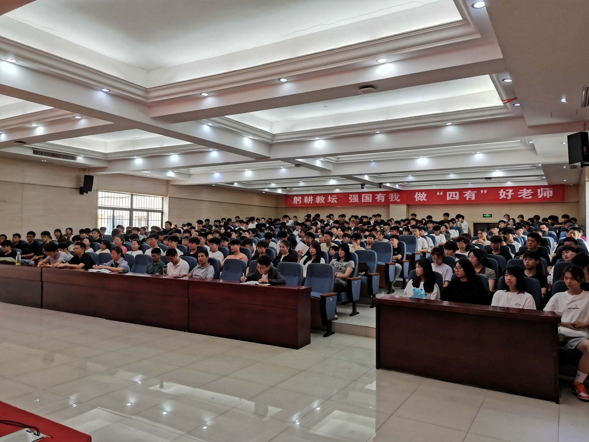 本网讯 为帮助2023级本科新生尽快转变角色、适应大学生活,养成良好的学习、生活、行为习惯,以积极、阳光的心态应对压力和挑战,营造一个安全有序,温馨友爱的学习生活环境,尽早树立稳固的专业思想和爱校荣校的良好心态。jinnianhui今年会精心组织,以目标导向、专业导论、入学适应教育、入党启蒙教育为主要内容的新生入学教育于9月11日上午在锦绣校区图书馆学术报告厅开启。学院领导班子成员、各系部主任、党支部书记、全体辅导员和2023级全体新生参加。