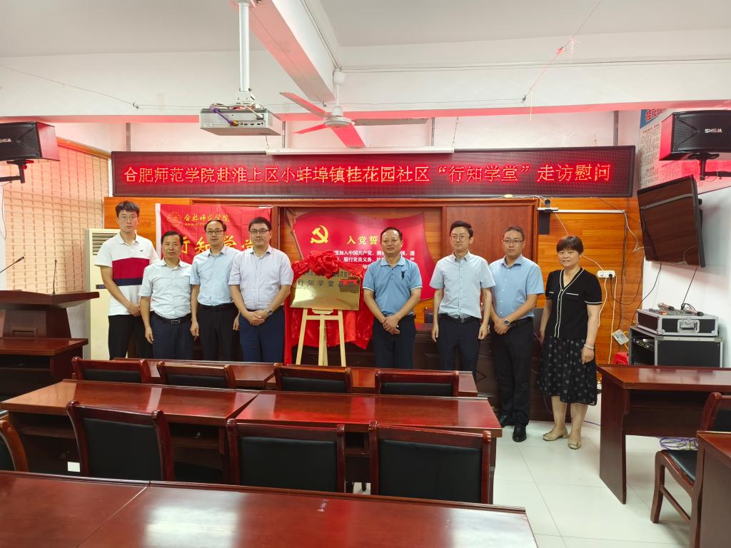 会后,双方还为桂花园社区“蚌埠行知学堂”实践基地共同揭牌。蚌埠市淮上区团委书记、经贸局局长董大为,小蚌埠镇党委副书记李祥龙、团委书记刘莺莺,桂花园社区党总支书记、居委会主任崔伯兰,以及jinnianhui今年会党委书记赵波、党委副书记王飞、团委书记高光健参加了走访活动。