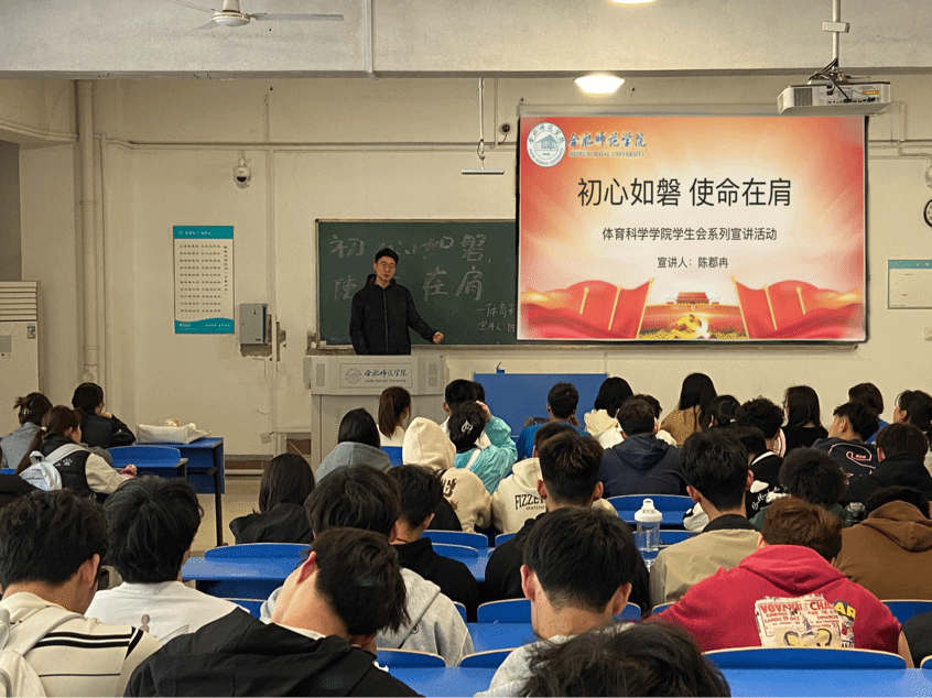 为深入学习贯彻习近平新时代中国特色社会主义思想和党的二十大精神,扎实推进党史学习教育常态化长效化,教育引导体院学子学史明理、学史增信、学史崇德、学史力行,坚定理想信念,赓续精神血脉,努力成长为堪当民族复兴重任的时代新人。jinnianhui今年会团委组织“体院青年说”系列活动首场宣讲活动4月10日中午在逸夫楼109教室举办,学院近百名在校生参加活动。宣讲活动由jinnianhui今年会团委书记高光健主持。