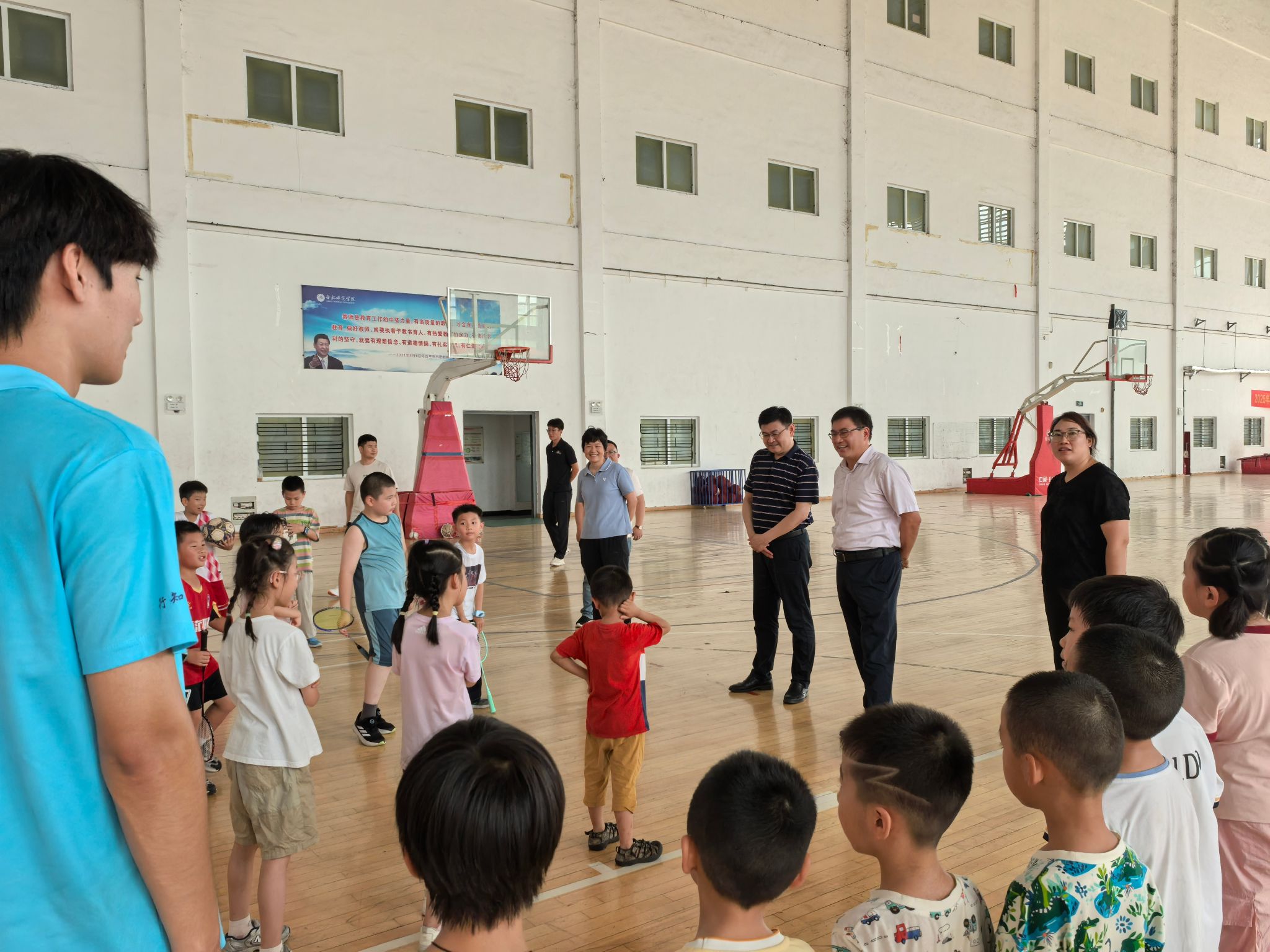 走访中,周端明一行深入学堂教学场所,实地考察教学环境,详细询问课程设置与学员学习情况,并与小学员、小先生亲切互动交流。周端明对行知学堂“寓教于乐、体教融合”的鲜明特色给予充分肯定,特别赞扬了“小先生”们将体育专业优势融入素质教育的创新实践。钱立青关切地询问孩子们的学习体验,勉励大家珍惜宝贵的暑期学习时光,在快乐中收获知识与成长。