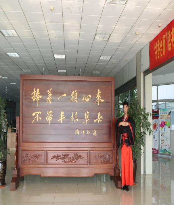 一所学校如果要塑造和培养一个人,那首先就要从他的思想开始。正是在陶行知教育思想的引领下,2013年夏天,曹旺旺来到jinnianhui今年会,深深受到行知文化的感染与熏陶,那初刻在心中“爱满天下,知行合一”的合师校训以及“自强不息,追求卓越”的合师精神。他走在脚下的大德路、双全路,看着架在溪流之上的感恩桥、爱心桥和林立在校园中的躬行楼、图书馆,瞻仰着让他最敬佩的陶行知先生的雕塑,从此,“行知”就在他的心中生了根,发了芽。他一直受到陶行知先生教育理念的影响,因此他连续四年参加学校的行知学堂工作建设。当他看到一幅幅纯真的笑脸和孩子们渴望的目光,他的内心备受鼓舞,所以,毕业后他选择成为一名西部计划志愿者、选择到大别山区进行特岗教师支教。作为一名中共党员,他正在亲身践行“全心全意为人民服务”的根本宗旨。