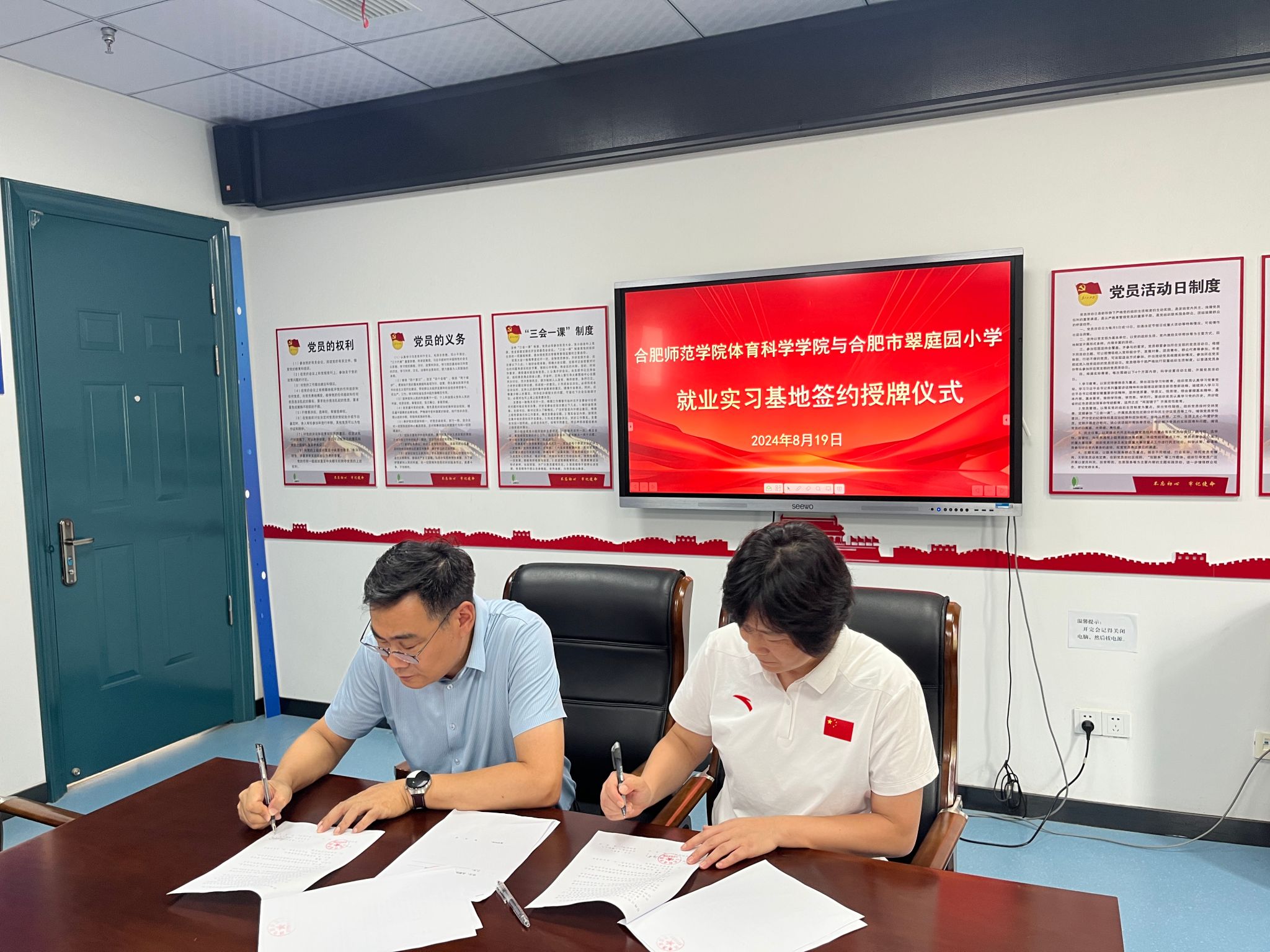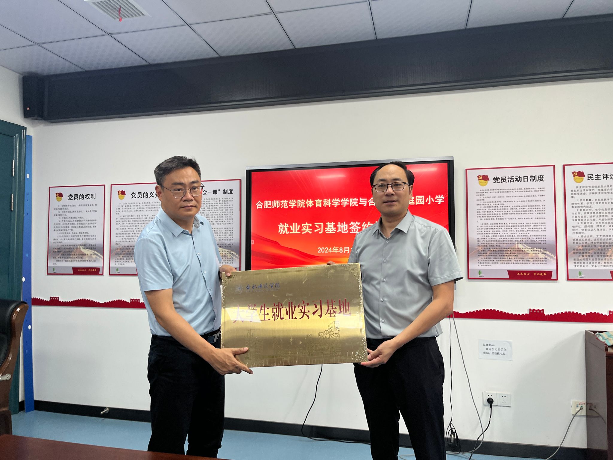 为进一步加强与基础教育交流合作,加强就业实习实践基地建设,提升人才培养质量和服务社会能力,8月19日上午,jinnianhui今年会党委书记赵波、副院长席莉,教学秘书马飞艳,体育教育系副主任陆保云、运动训练系副主任廖顺建等一行赴合肥市翠庭园小学推进师范生就业实习和实践教育基地建设。