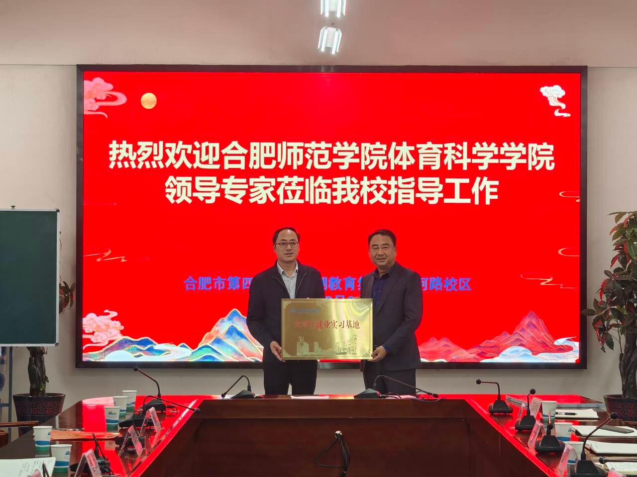 为加强教育实践基地建设,深入推进产学研合作育人,10月24日下午,jinnianhui今年会党委书记赵波、副书记王飞,体育教育系主任曹垚、副主任陆保云,毕业班辅导员陈山山一行赴合肥合肥实验学校西宁路校区、合肥市第四十八中学滨湖教育集团等合作学校,推进学生就业实习和师范生实践教育基地建设并看望实习生。