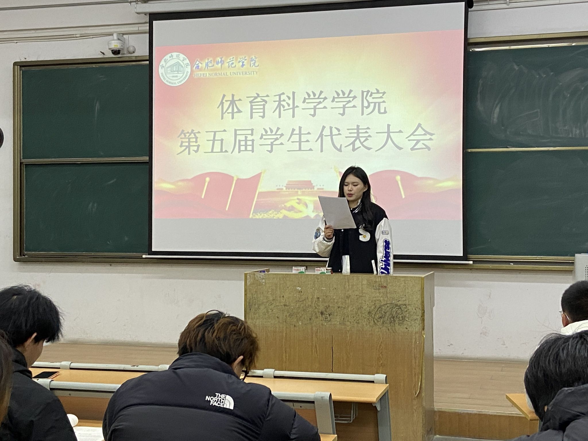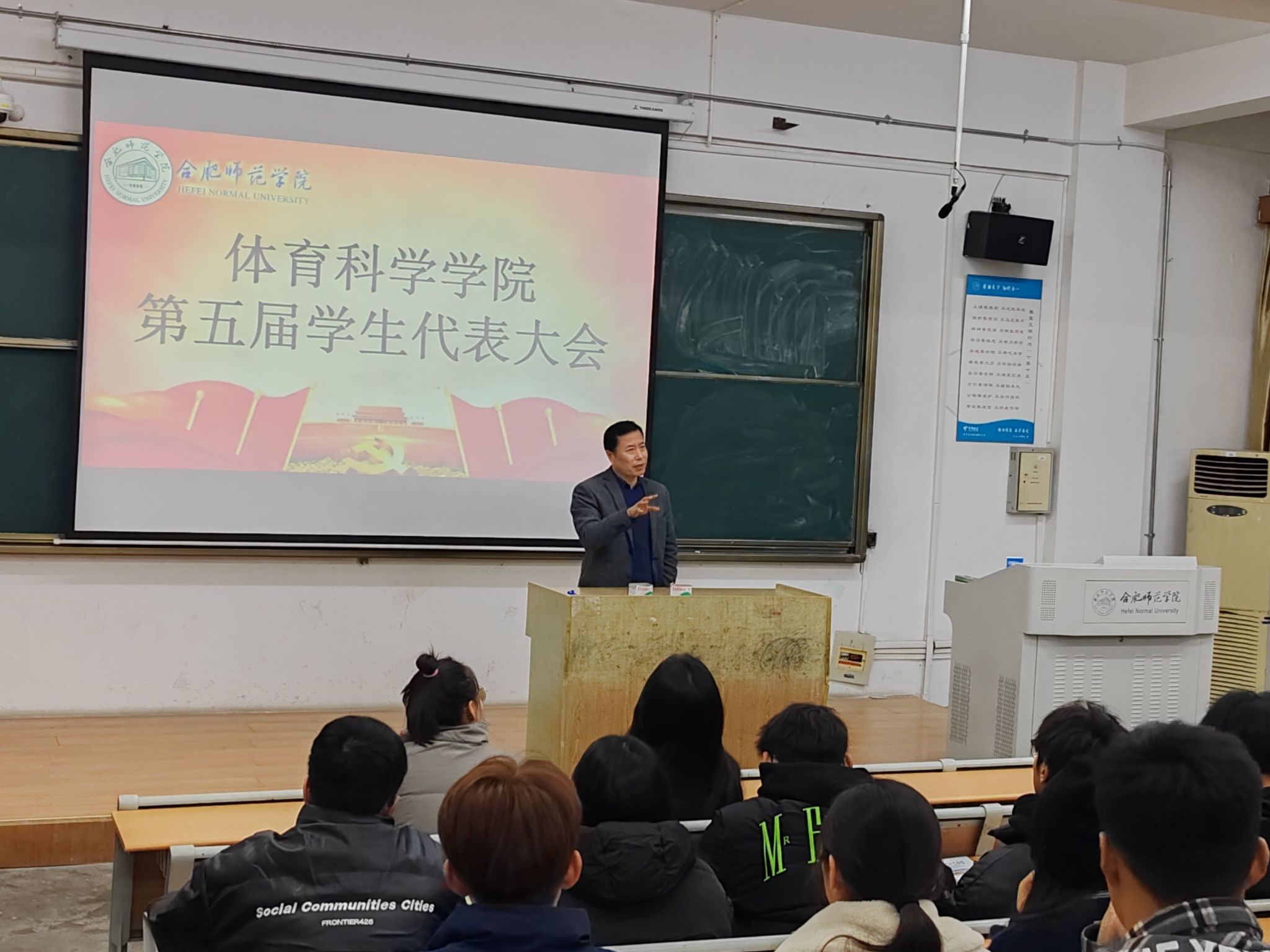 为完善学生干部的队伍建设,选拔出一批思想素质过硬,工作作风扎实,实践能力突出的学生干部队伍,11月14日晚上,jinnianhui今年会在锦绣校区博约楼112教室胜利召开第三次学生代表大会,体科院党委副书记王飞、学院分团委书记高光健,45名学生代表出席本次会议。