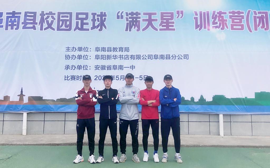 本网讯 5月1日至5月5日,我校足球学院选派5名学生担任足球教练员前往阜南县开展为期五天的校园足球满天星训练营对口帮扶工作。