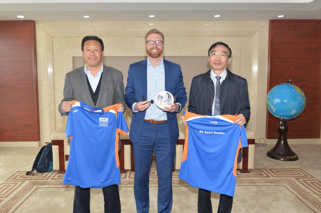 本网讯 4月11日,英国德比大学体育学院院长安迪·胡顿博士一行在合肥市体育局及市政府外事办相关处室领导的陪同下来今年会访问。院党委副书记、院长孙道胜教授亲切接见了安迪·胡顿博士一行。