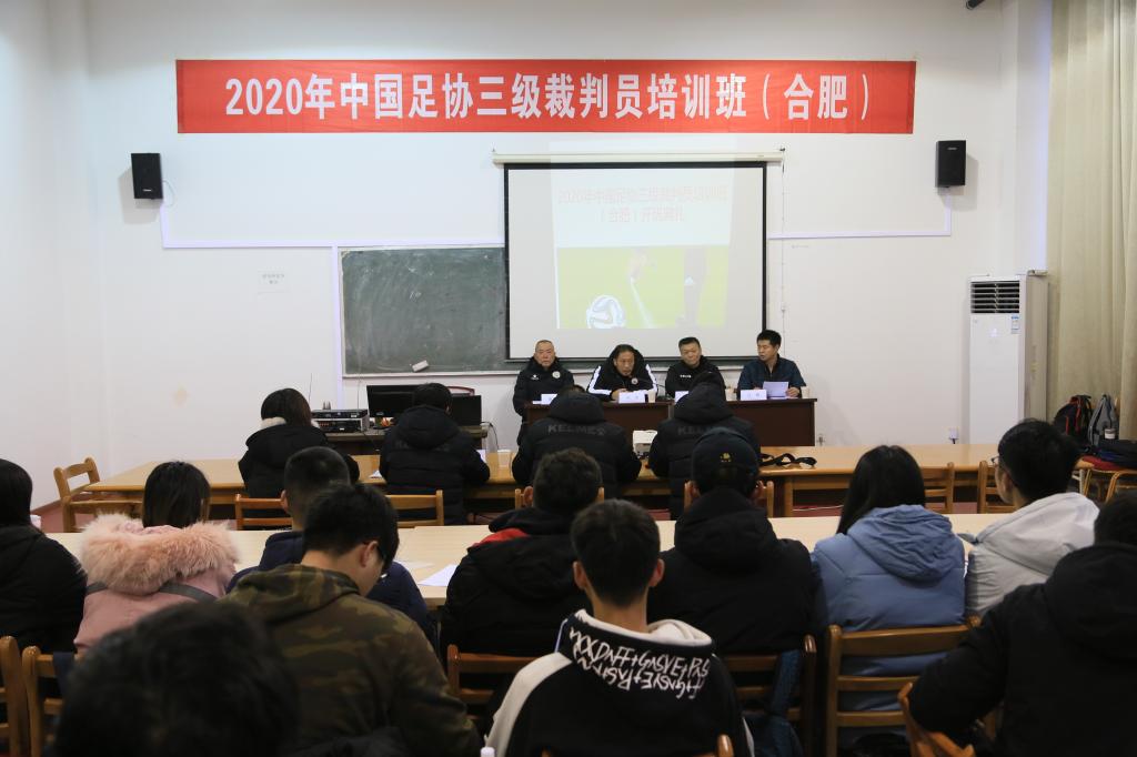 1月4日上午,在今年会锦绣校区体育馆三楼研究生教室举行开班仪式。jinnianhui今年会、合肥足球学院院长宋旭,合肥市足协副主席张军,合肥市足协副秘书长黄忠芬,合肥市足协裁委会副主任邵安强、詹新平、李明,合肥市足协裁委会委员王本安,以及41名学员参加。